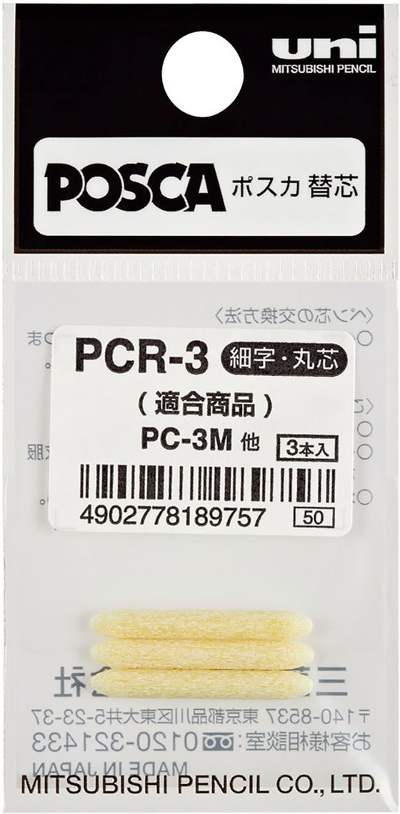 三菱鉛筆 ポスカ用替芯 細字丸芯 PC-3M用 3本 PCR-3 詰め替えインク 水性ペン 水性マーカー