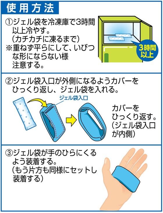 ●ジェル袋の中身が目に入ったり、皮ふに付いたりした時は、水で洗い流して下さい。異常を感じた場合は医師に相談して下さい。