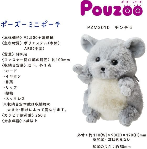 骨格パーツ入りで色々なポーズがとれるぬいぐるみペンポーチの「ポーズー」シリーズに、持ち運びやすい「ミニポーチ」が登場!