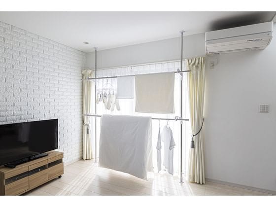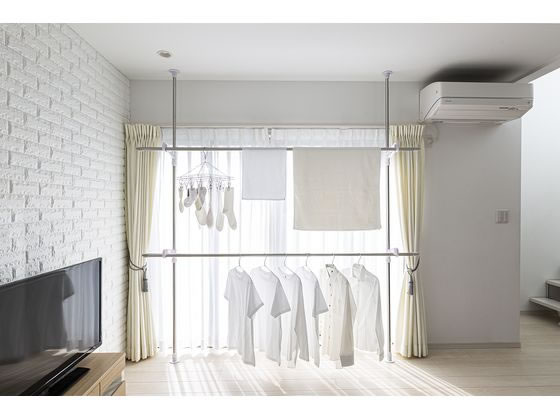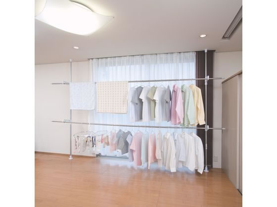 窓際や壁面など室内で多量干しができるつっぱり式ものほしです