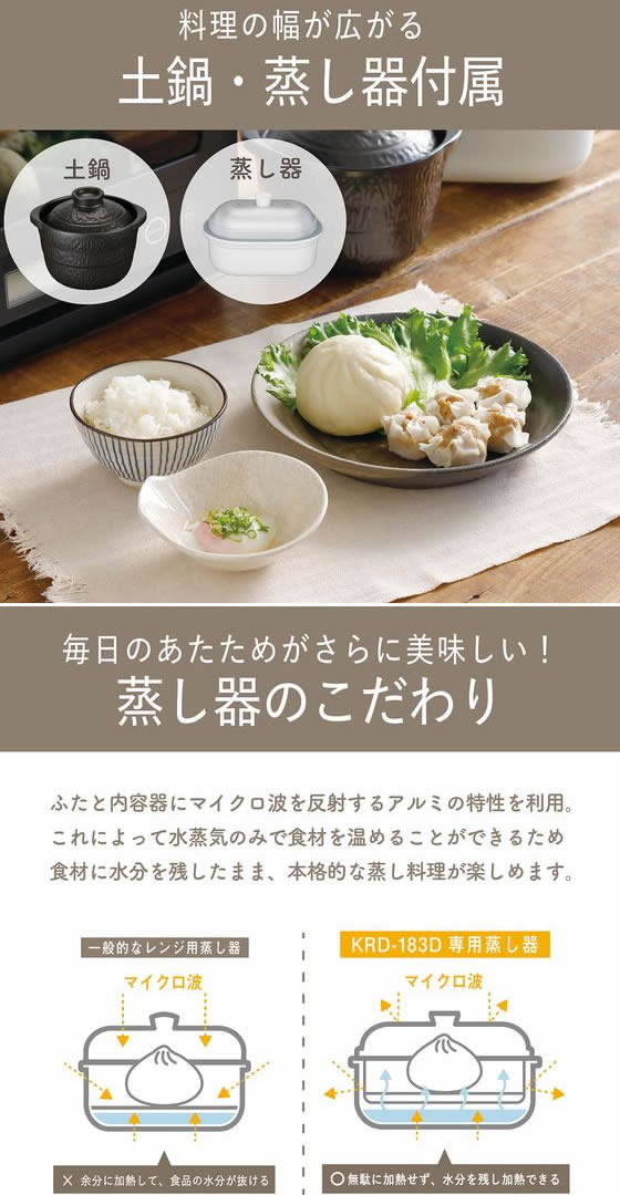 【お取り寄せ】送料無料 KOIZUMI 土鍋付き電子レンジ KRD183DK あたため専用電子レンジ 電子レンジ ホームベーカリー キッチン家電 調理家電