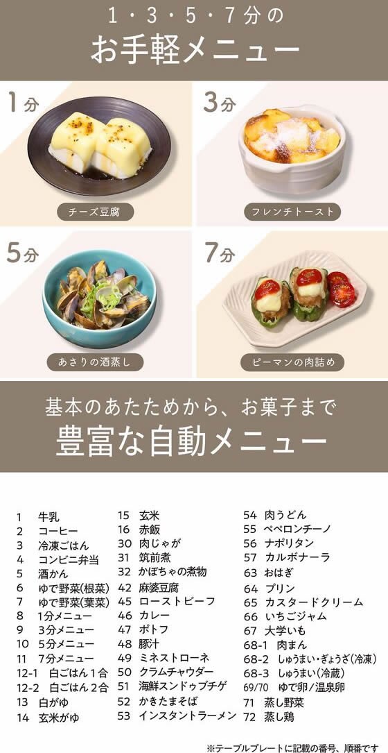 ●高周波出力(電子レンジ):1000W(短時間高出力機能/約3分間)
