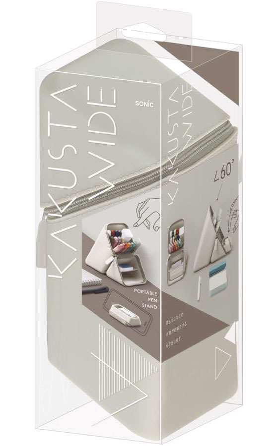 ソニック カクスタ ポータブルペン立て ワイド 引き出し付 グレージュ ペン立て ペンスタンド ペンケース デスクトップ収納 デスク周り 文具