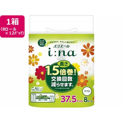 送料無料 大王製紙 エリエール イーナ トイレットティシュ- 37.5mダブル8ロール×12P 業務用パック トイレットペーパー