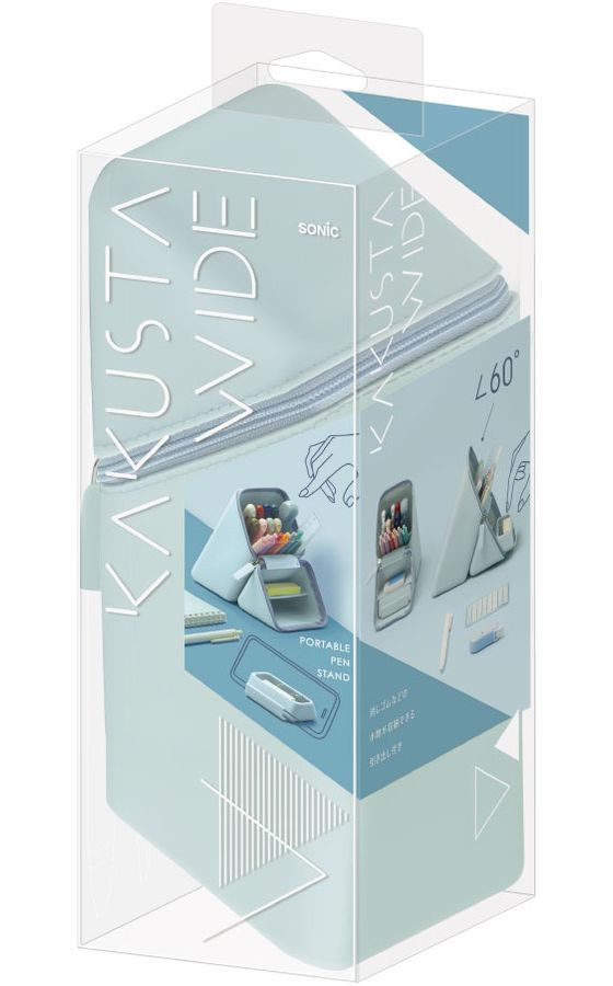 ソニック カクスタ ポータブルペン立て ワイド 引き出し付 ライトブルー ペン立て ペンスタンド ペンケース デスクトップ収納 デスク周り 文具