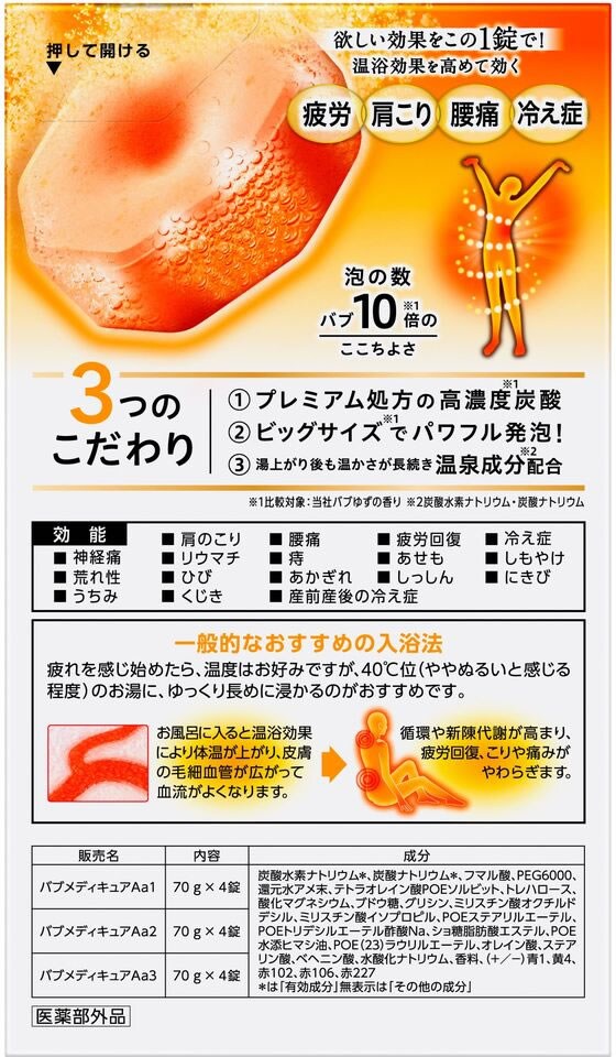 ※1炭酸のオフロに変わる!欲しい効果をこの1錠で。温浴効果を高めて、疲労・肩こり・腰痛・冷え症に効く。