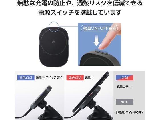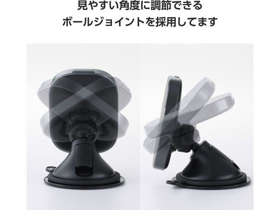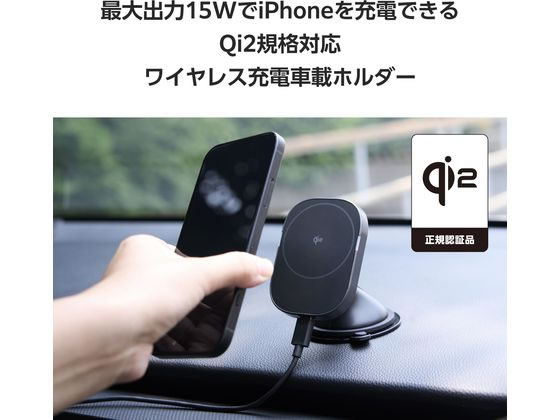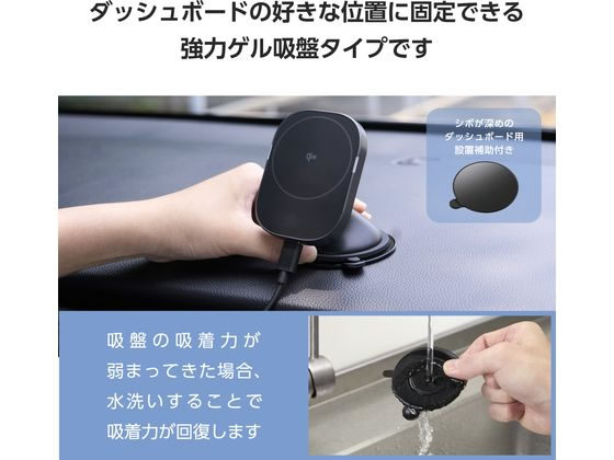 【取寄せ品】エレコム ワイヤレス充電器 Qi2 車用 強力ゲル吸盤 黒 W-QC12BK