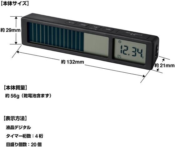 ●表示方法:液晶デジタル、タイマー桁数/4桁、目盛り個数/20個