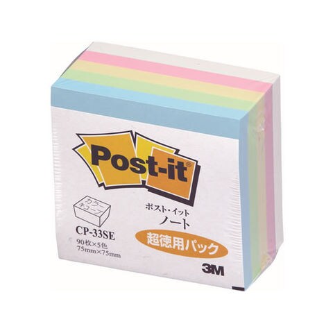 3M ポスト・イット エコノミーシリーズ パステル5色 450枚 CP-33SE 大型 正方形タイプ ノートタイプふせん インデックス メモ ノート