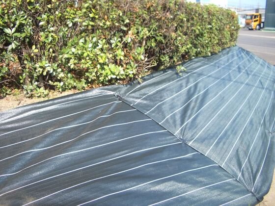 遮光率を高くしている(遮光率99%)ことで雑草の育成抑制するポリプロピレンクロスです。住宅周りの雑草抑制、未整備地などの防塵・防砂対策用途として。