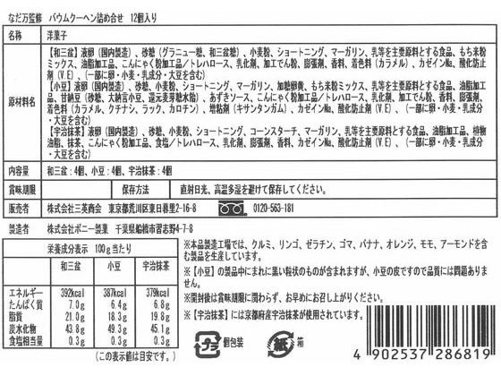 ●内容量:カットクーヘン 大納言・和三盆・宇治抹茶 ×各4個、合計12個