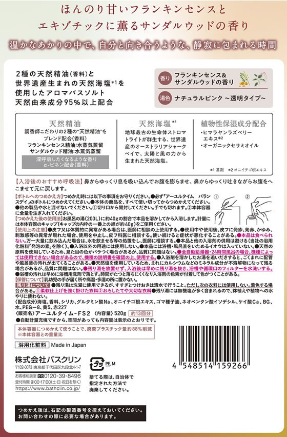 【お取り寄せ】 バスクリン アーユルタイム バランスデイ 詰替 520g 入浴剤 バス ボディケア スキンケア