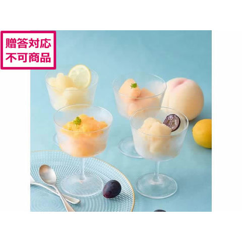 ゆめほっぺ・瀬戸内レモン・福島のあかつき(白桃)・ピオーネと、日本の豊かな気候で育った国産フルーツを使用した贅沢なジュレを凍らせて食べるシャーベット。