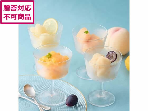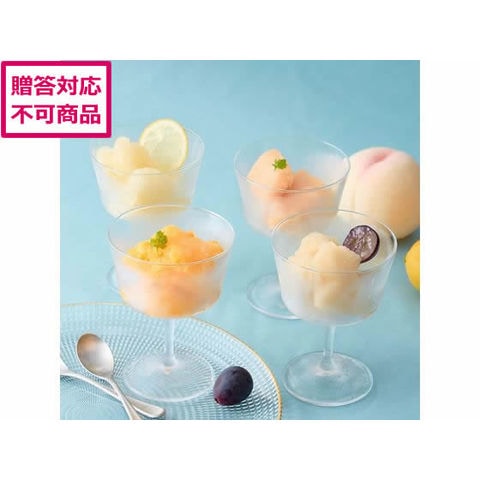 ゆめほっぺ・瀬戸内レモン・福島のあかつき(白桃)・ピオーネと、日本の豊かな気候で育った国産フルーツ果汁を使用した贅沢なジュレを凍らせて食べるシャーベット。