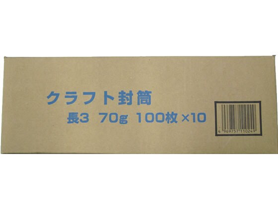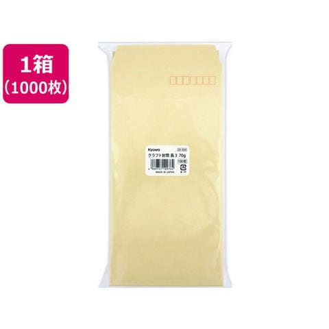送料無料 クラフト封筒 長3 70g/㎡ 1000枚 フ-604 長3 A4判横三ツ折り用 長タイプ封筒 ノート