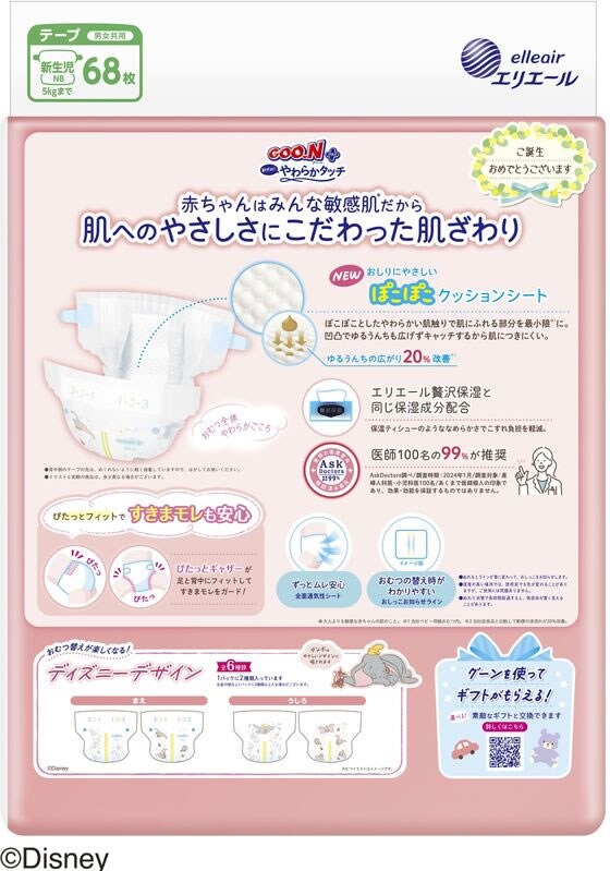 【お取り寄せ】 大王製紙 グーンプラス 敏感肌にやわらかタッチ 新生児用68枚 おむつ オムツ おしりふき ベビーケア