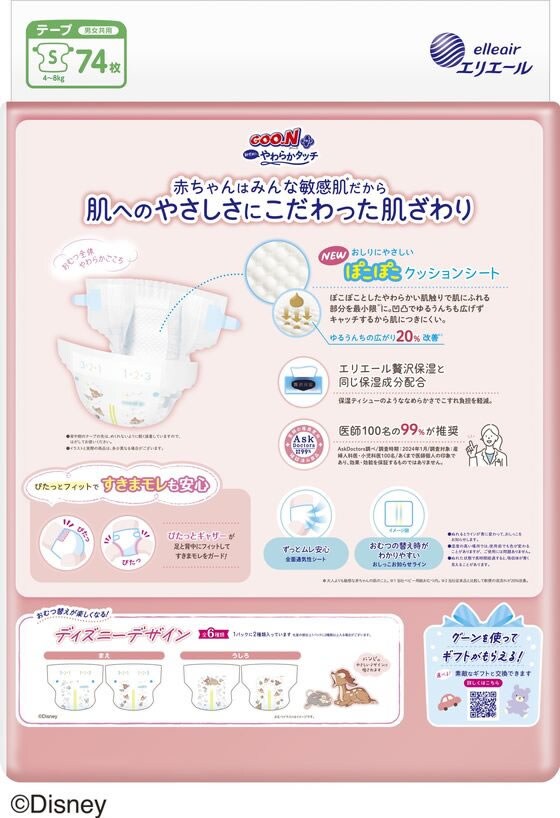 【お取り寄せ】 大王製紙 グーンプラス 敏感肌にやわらかタッチ Sサイズ74枚 おむつ オムツ おしりふき ベビーケア