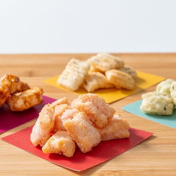 きめが細かく、粘りのある食感が特徴の佐賀県産ヒヨクモチを使用して、健康や美容に良いとされる米油で1つ1つ丁寧に揚げ、香り豊かな4種のフレーバーに仕上げました。