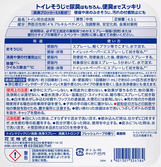 送料無料 KAO トイレマジックリン洗浄・消臭スプレー消臭ストロング 業務用 4個 トイレ用洗剤 掃除用洗剤 洗剤 清掃