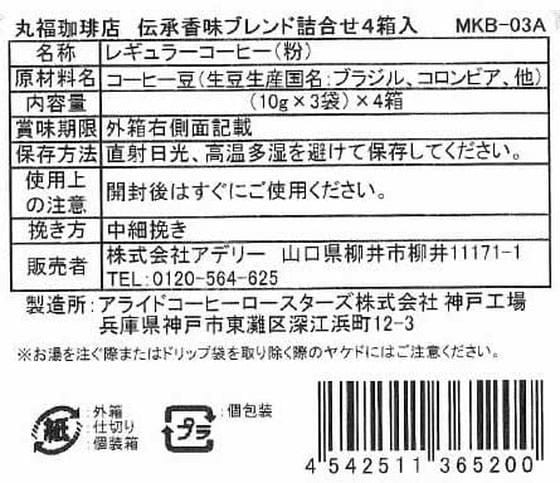 ●内容量:ドリップ珈琲 伝承香味ブレンド(10g×3袋)×4箱