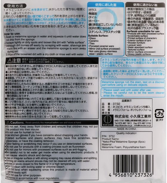 【お取り寄せ】 小久保工業所 ネコピカ メラミンスポンジ 6個 スポンジタワシ クリーンナップ キッチン消耗品
