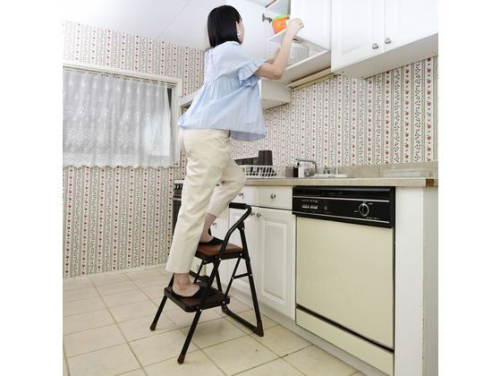 送料無料 YAMAZEN チェア踏み台 折りたたみ 2段 ブラウン WCS-2R(DBR) 踏み台 折りたたみ式 はしご 作業