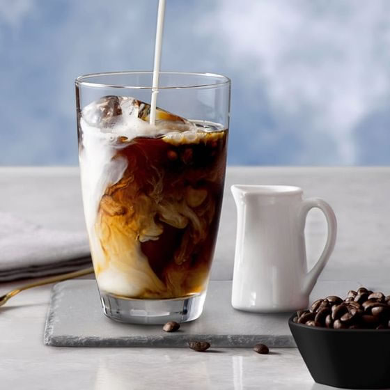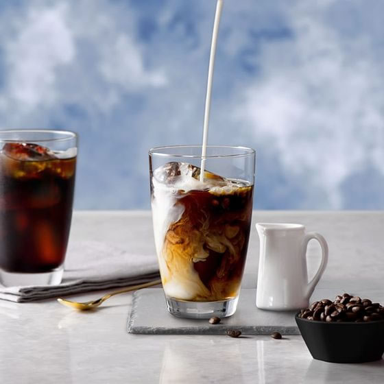 こだわりを守り続ける丸福珈琲店がお届けする、オリジナルブレンドのアイスコーヒーと、牛乳で割って楽しむ甘みあるカフェオレベースのセットです。
