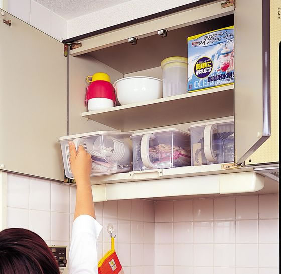 握りやすい大きな取っ手付きだから、高い所の取り出しも簡単。カラーボックスにもピッタリなサイズ。
