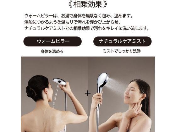●湯船につかれない時もしっかりと温まりウォームピラーとナチュラルケアミストの相乗効果で高い洗浄力を実現します。