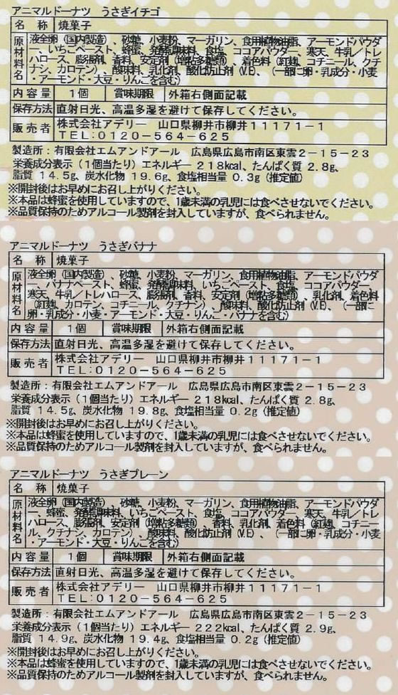 ●内容量:うさぎイチゴ・うさぎプレーン・うさぎバナナ・くまチョコ・くま抹茶・くまキャラメル×各2個、合計12個