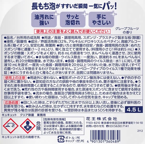 送料無料 KAO キュキュットクリア除菌 業務用 4.5L×4本 食器洗用洗剤 キッチン 厨房用洗剤 洗剤 清掃