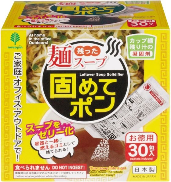 ご家庭オフィスアウトドアで残った麺スープを固めて燃えるゴミとして捨てられます。