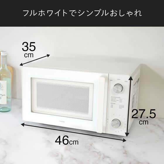 単機能の電子レンジ。庫内を広々使えてお手入れしやすいフラット構造。庫内容量20L