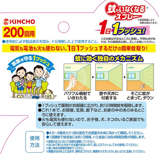 効能・効果:蚊成虫、ハエ成虫(200回無香料のみ)の駆除