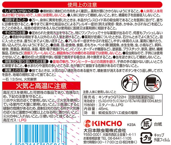 ※人体用(人体用虫よけ剤)ではないので、人の身体には使用しないこと。