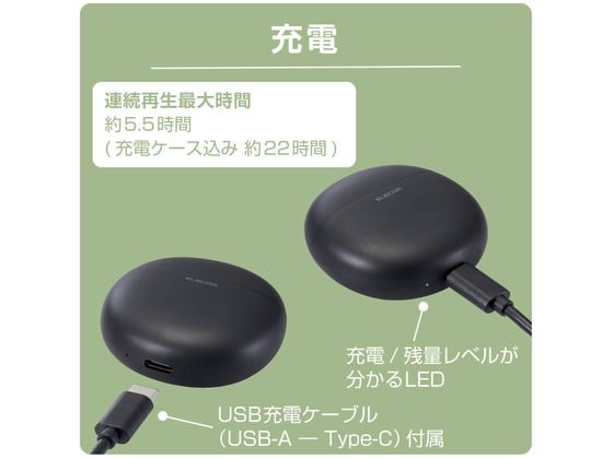 ●連続再生最大時間:約5.5時間(充電ケース込み 約22時間)