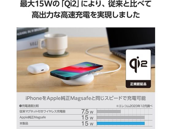 【お取り寄せ】 エレコム ワイヤレス充電器 Qi 認証 Qi2 対応 ホワイト W-MA08WH ワイヤレス充電器 バッテリー 充電器 スマホ タブレット関連品