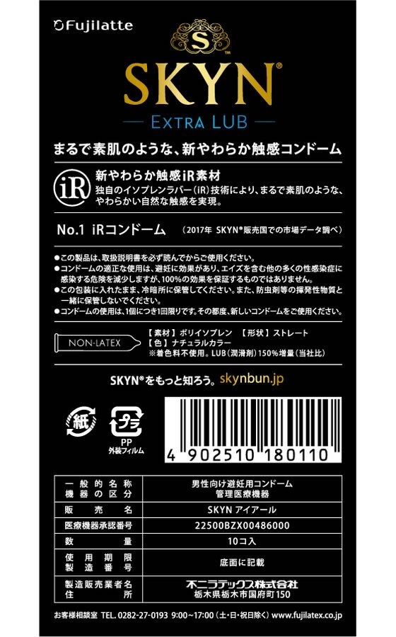 不二ラテックス SKYN EXTRA LUB 10個入り メディカル