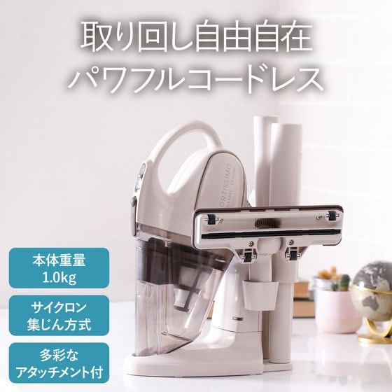 本体重量約1.0kg。豊富なアタッチメントで床掃除、布団や窓サッシ、エアコンの掃除もおまかせ