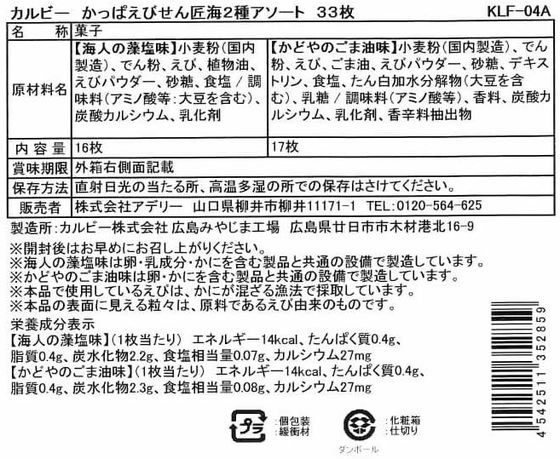 【メーカー直送】 カルビー かっぱえびせん匠海2種アソート 33枚 KLF-04A 煎餅 和菓子 お菓子 デザート お取り寄せグルメ【代引不可】