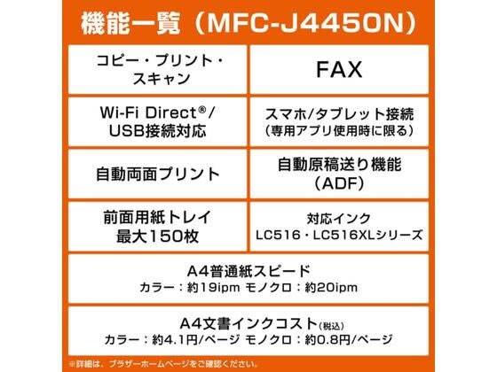 ブラザー A4インクジェットFAX付複合機 大容量 MFC-J4450N