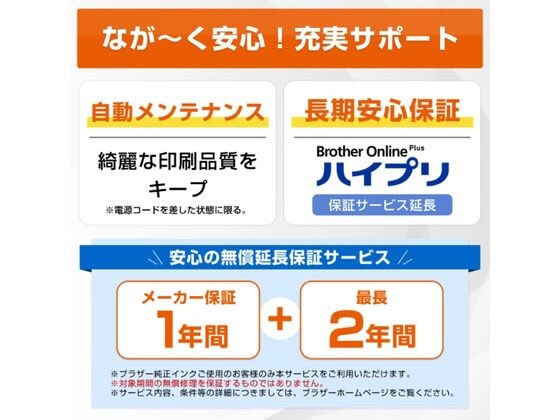 ※LC516XLシリーズ)ブラザーオンラインの「ユーザー会員」登録後、マイページの「ハイプリ」から「2年間で1回使える無償修理サービス」に登録いただくと、修理期間が延長。