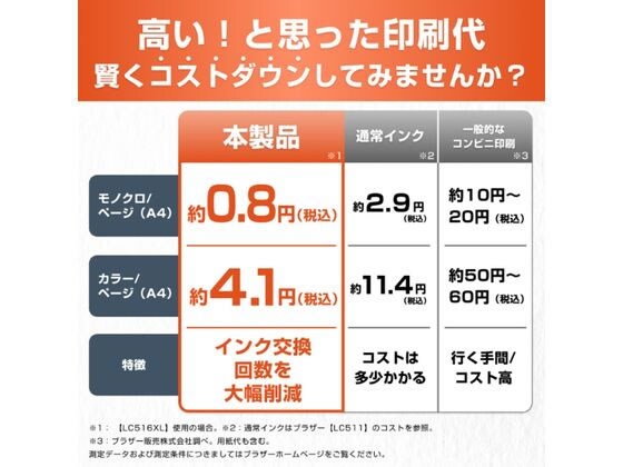 ●対応インク:(大容量)LC516XLシリーズ・(通常)LC516シリーズ