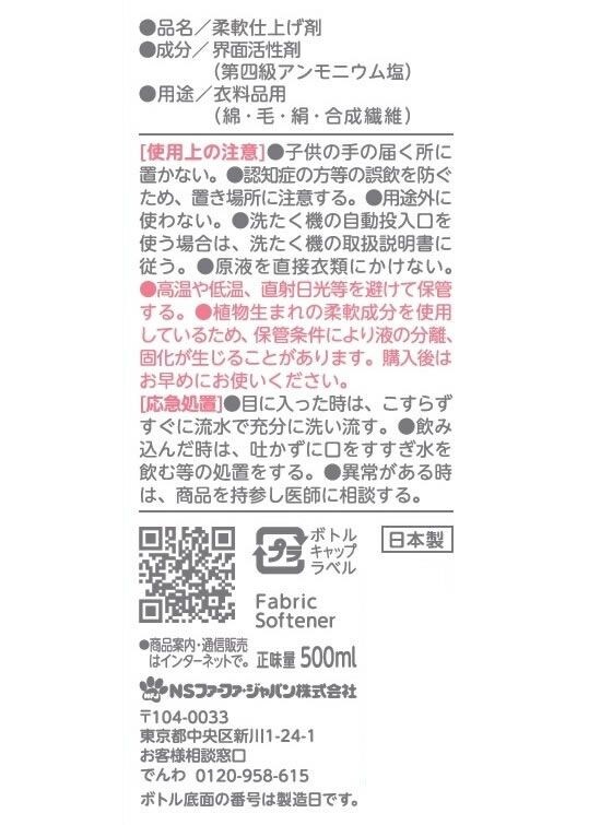 【メーカー直送】NSファーファJ ファーファ フリー&香りのない柔軟剤 本体 500ML×12