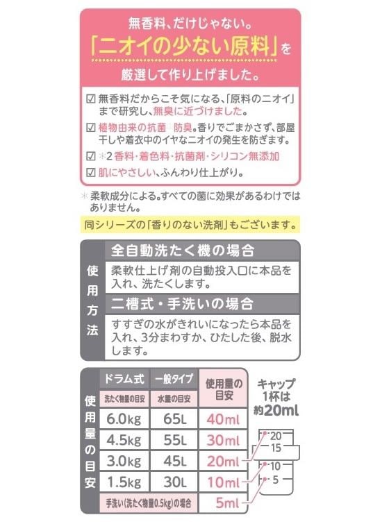 ニオイの少ない原料を厳選した香りのない柔軟剤。