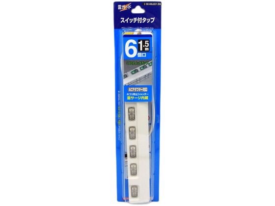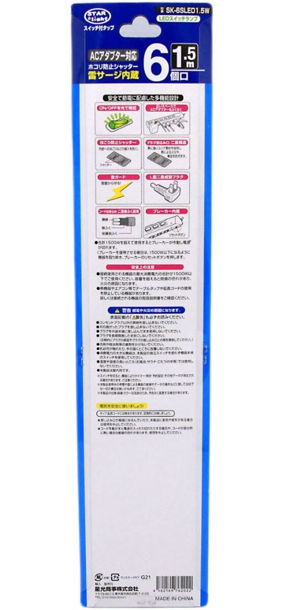 星光商事 6個口雷ガード・LEDスイッチタップ SK-6SLED1.5W コード付き電源タップ2ピン 電源タップ OAタップ 配線パーツ 家電