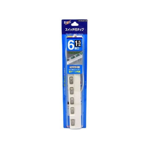 LEDランプ付き個別スイッチ 雷ガード ホコリ侵入防止 6個口1.5mOAタップ