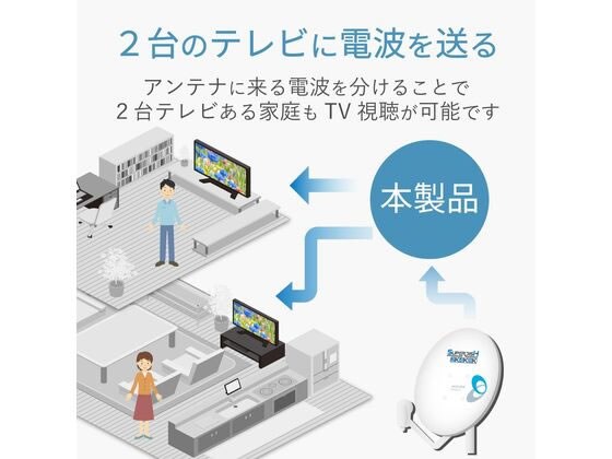新4K8K衛星放送に対応した2分配器です。テレビの電波を2つに分けます。