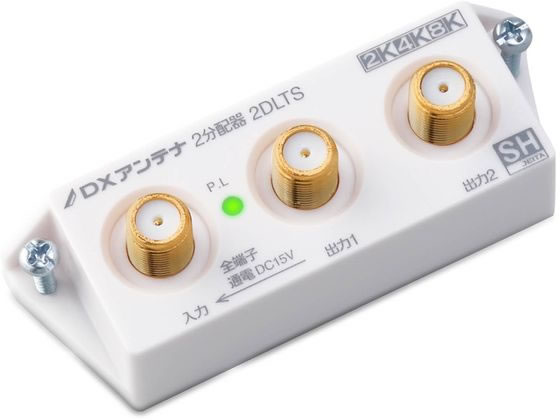 新4K8K衛星放送に対応した2分配器です。テレビの電波を2つに分けます。