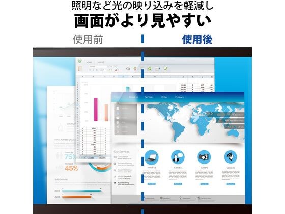 抗菌タイプののぞき見防止フィルターです。画面正面を中心に60度(左右30度)より外の角度からはまっ黒に見えるので、画面を見られる心配がありません。銀系無機抗菌剤により、雑菌の繁殖を抑え、いつでも清潔な画面を保ちます。こちらの製品は表面上における細菌の増殖を抑制、あるいは阻害する性能を有したもので、財団法人日本規格協会(JSA)が定める抗菌性試験に準拠したものです。